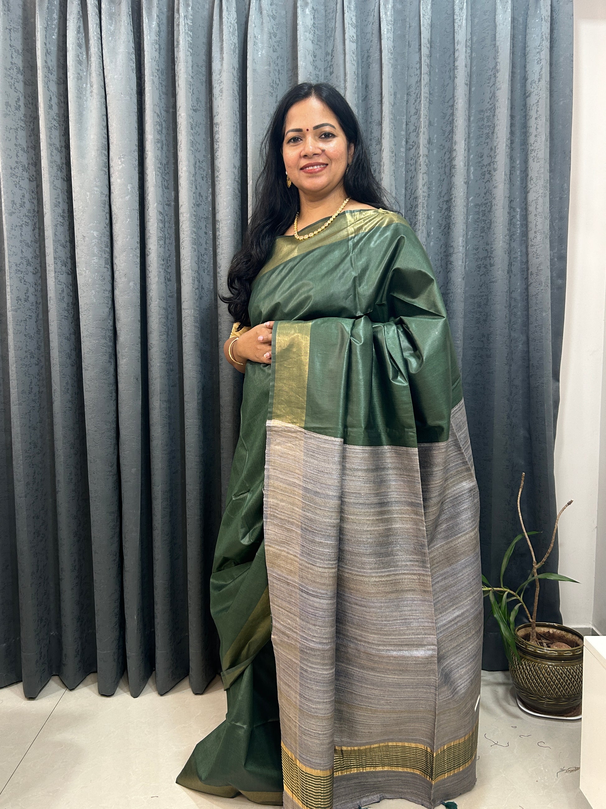 Dark Green- Grey Bafta Pure Silk with Geecha Pallu SPS110