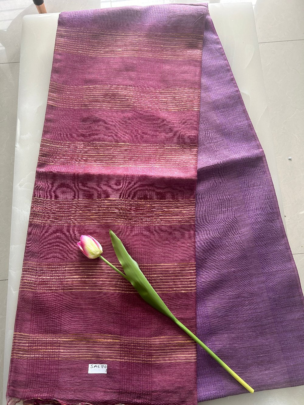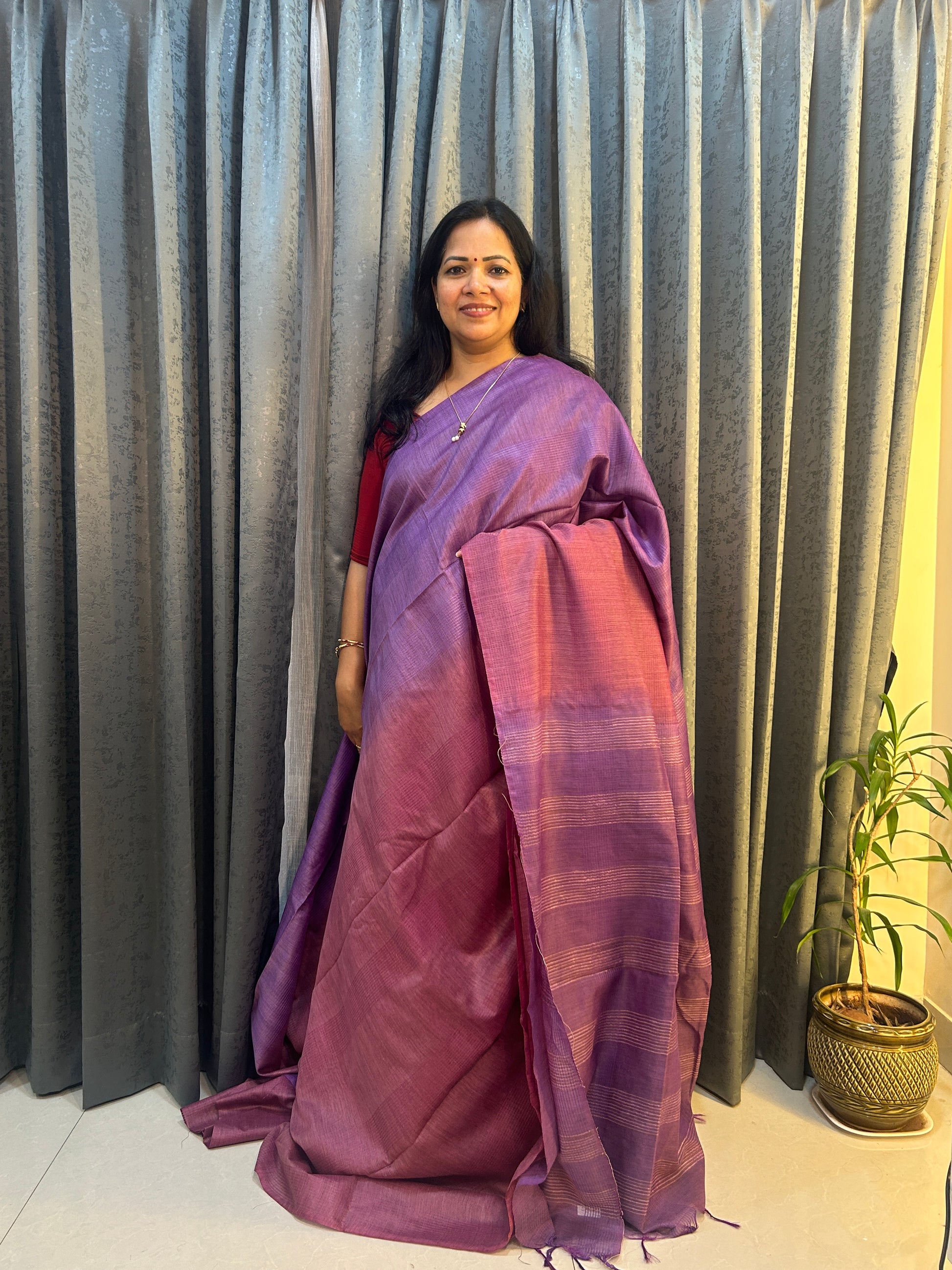 Lavender and purple double shaded 8 lines Art tusser silk saree SAS70