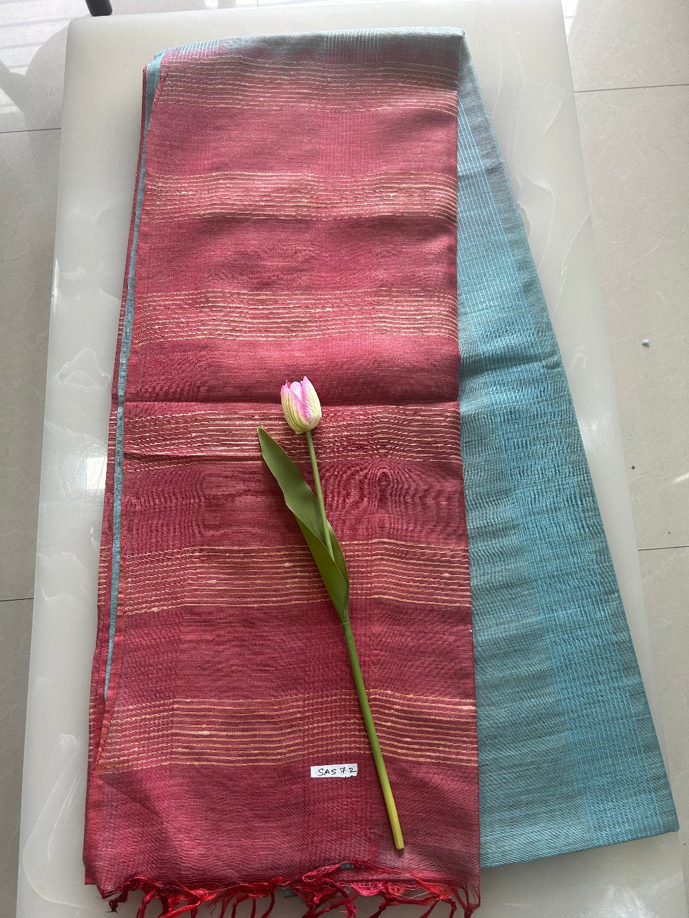 Light blue and brick red shaded 8 lines shaded Art tusser silk saree SAS72