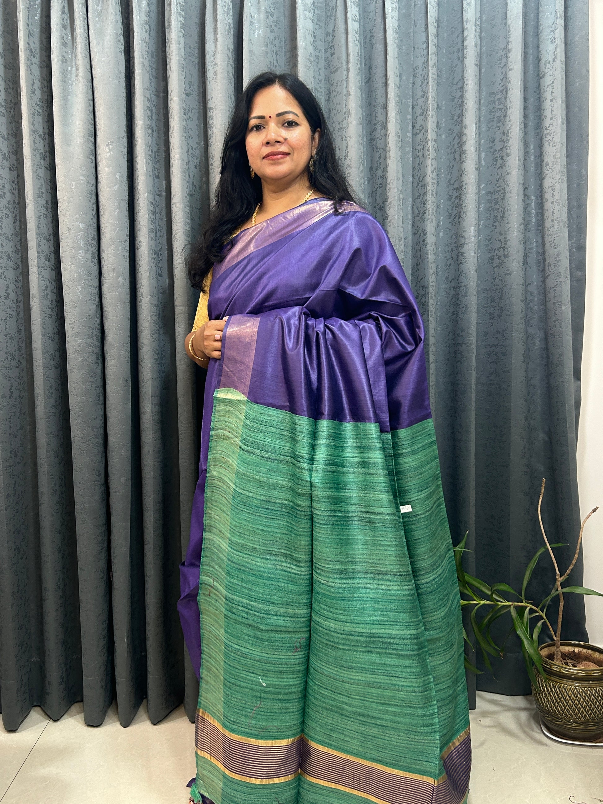 Dark Purple- Green Bafta Pure Silk with Geecha Pallu SPS109