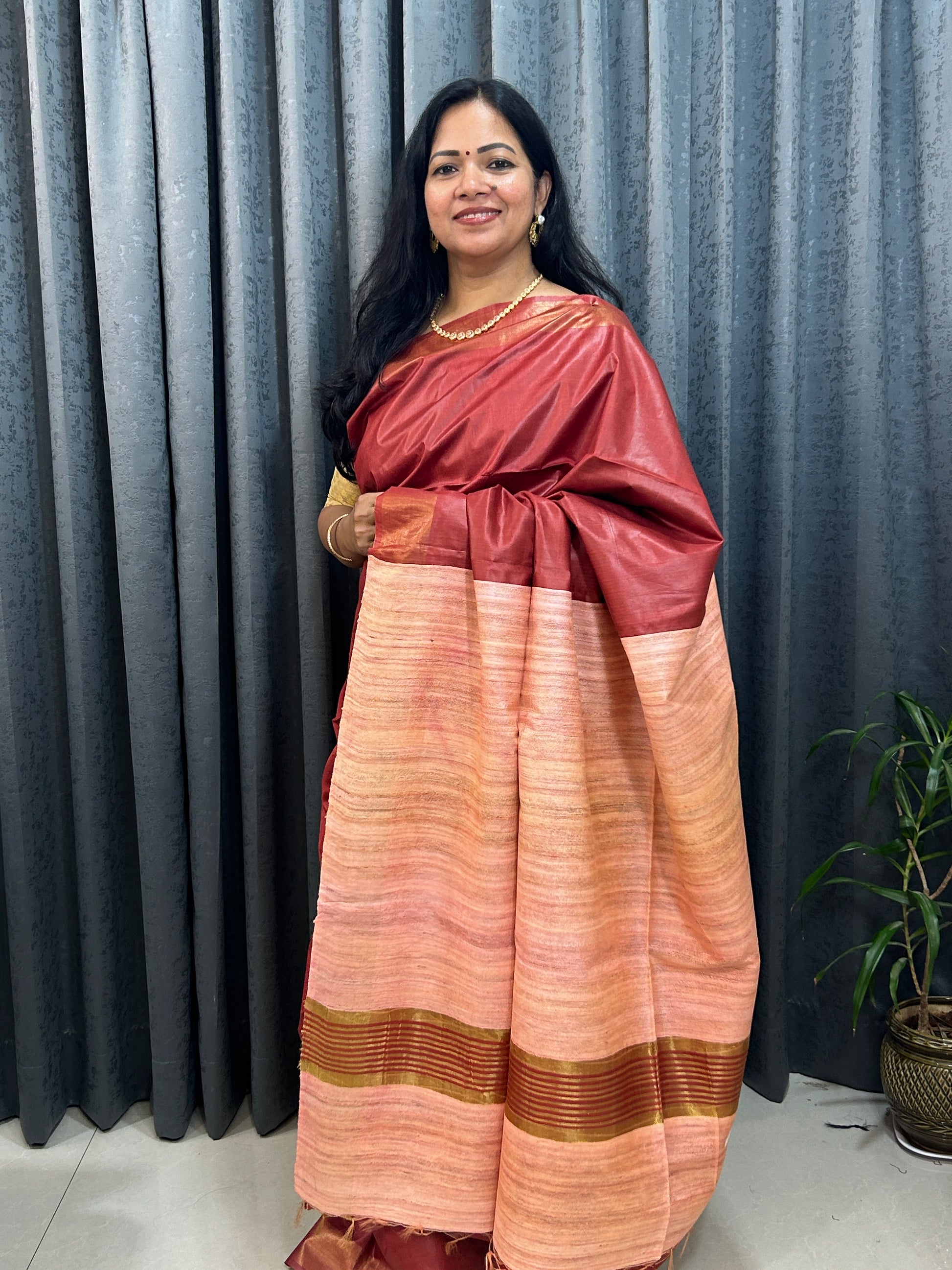 Maroon- Peach color Bafta Pure Silk with Geecha Pallu SPS114