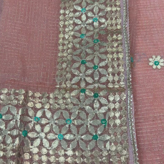 Peach color Kota Doria with Gotapatti 3 piece unstitched Dress Material