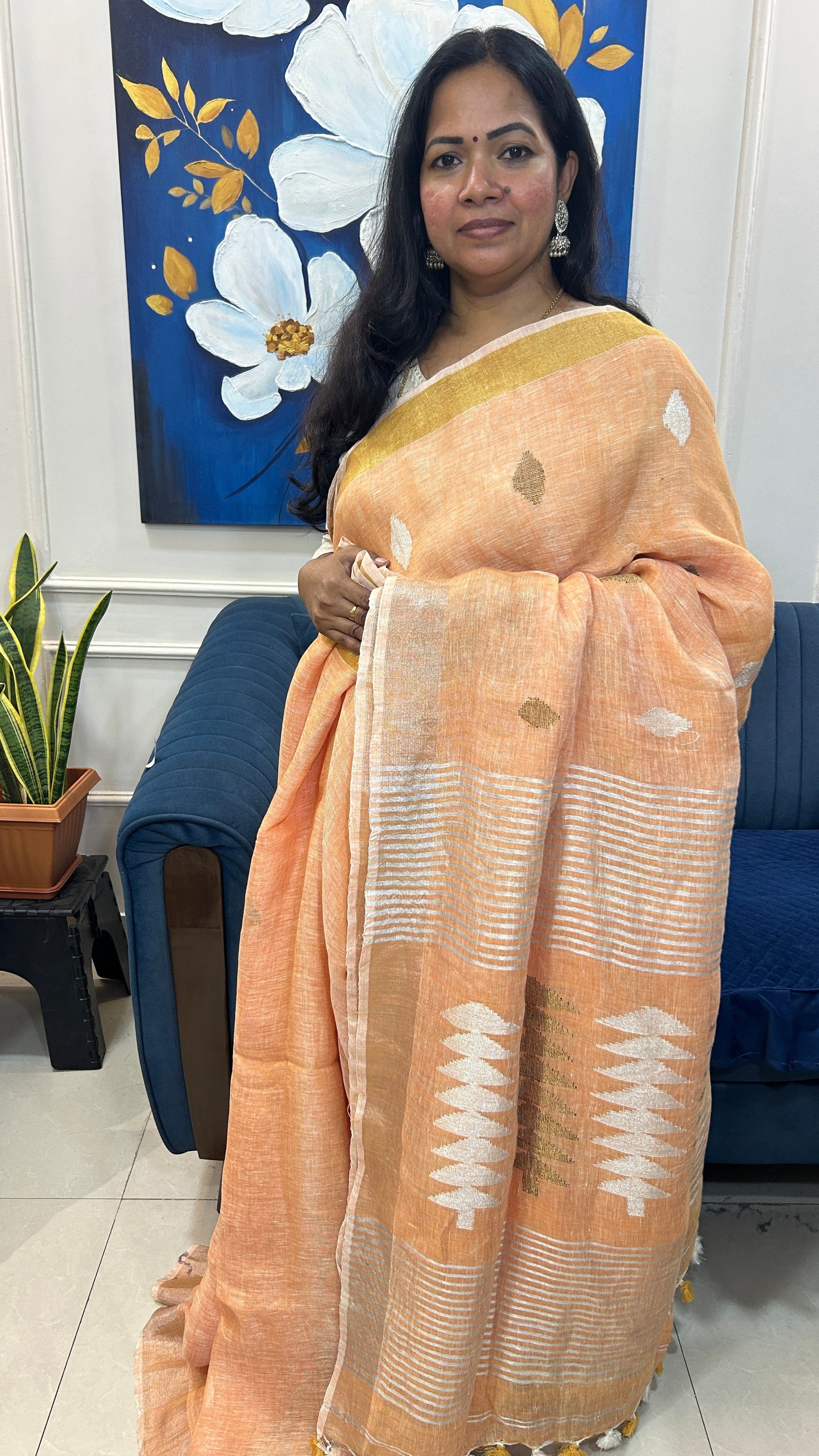 Peach Linen Jamdani weaving Pure Handloom Saree with Blouse Piece SLN38