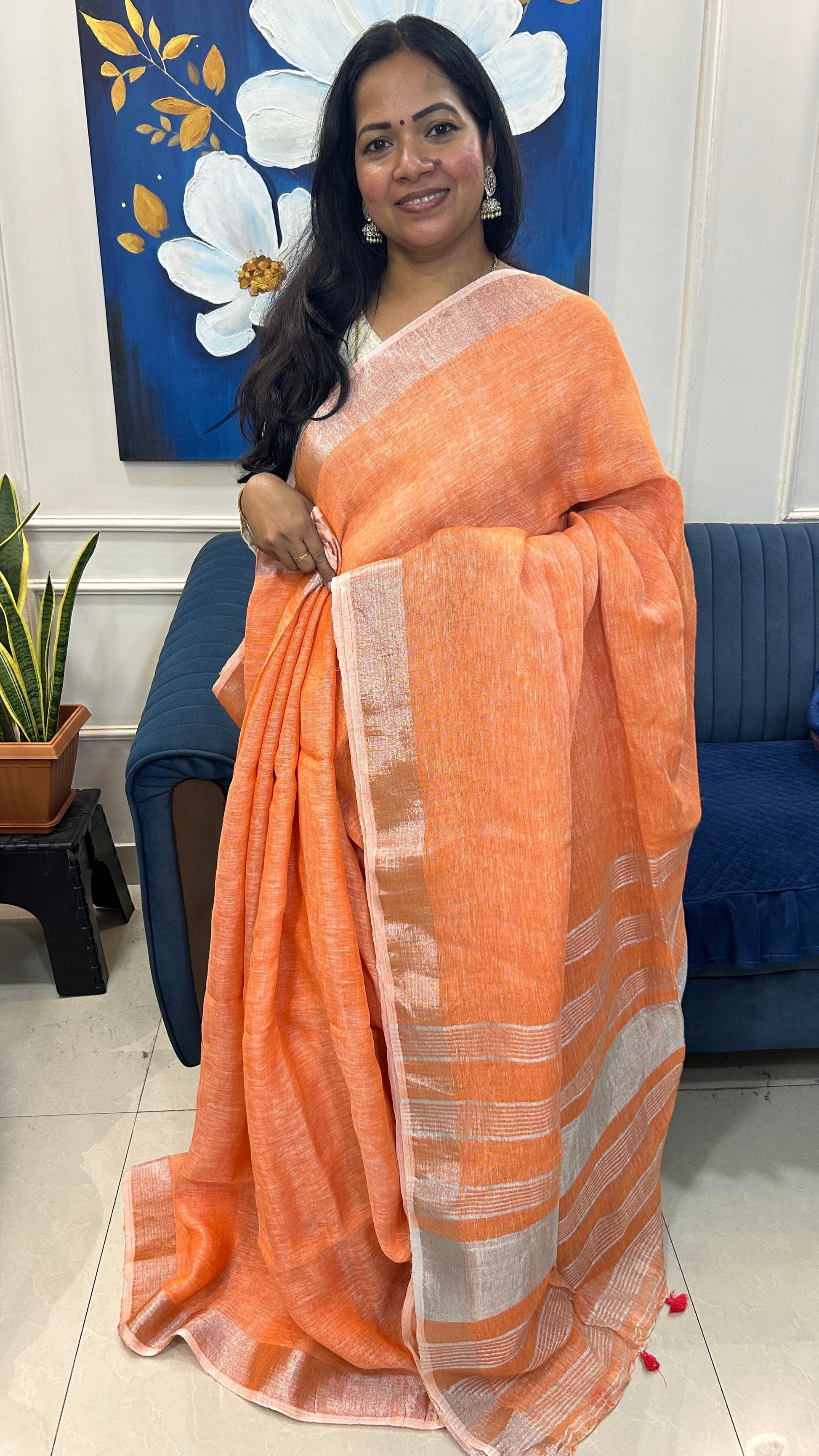 Pure Handloom Linen Saree with Blouse piece
