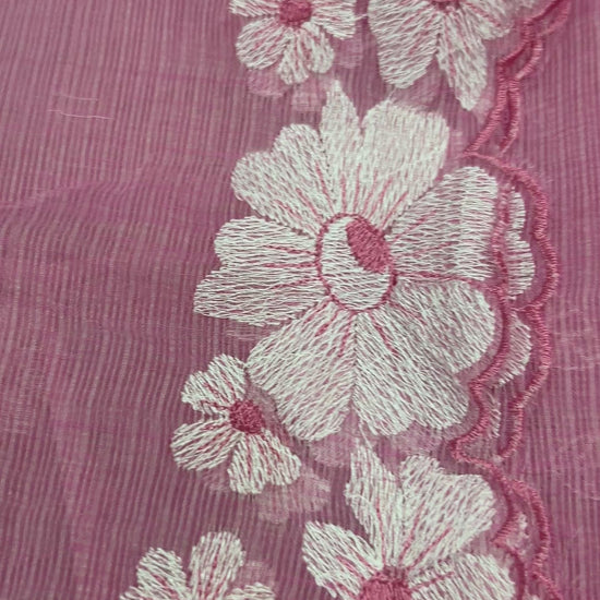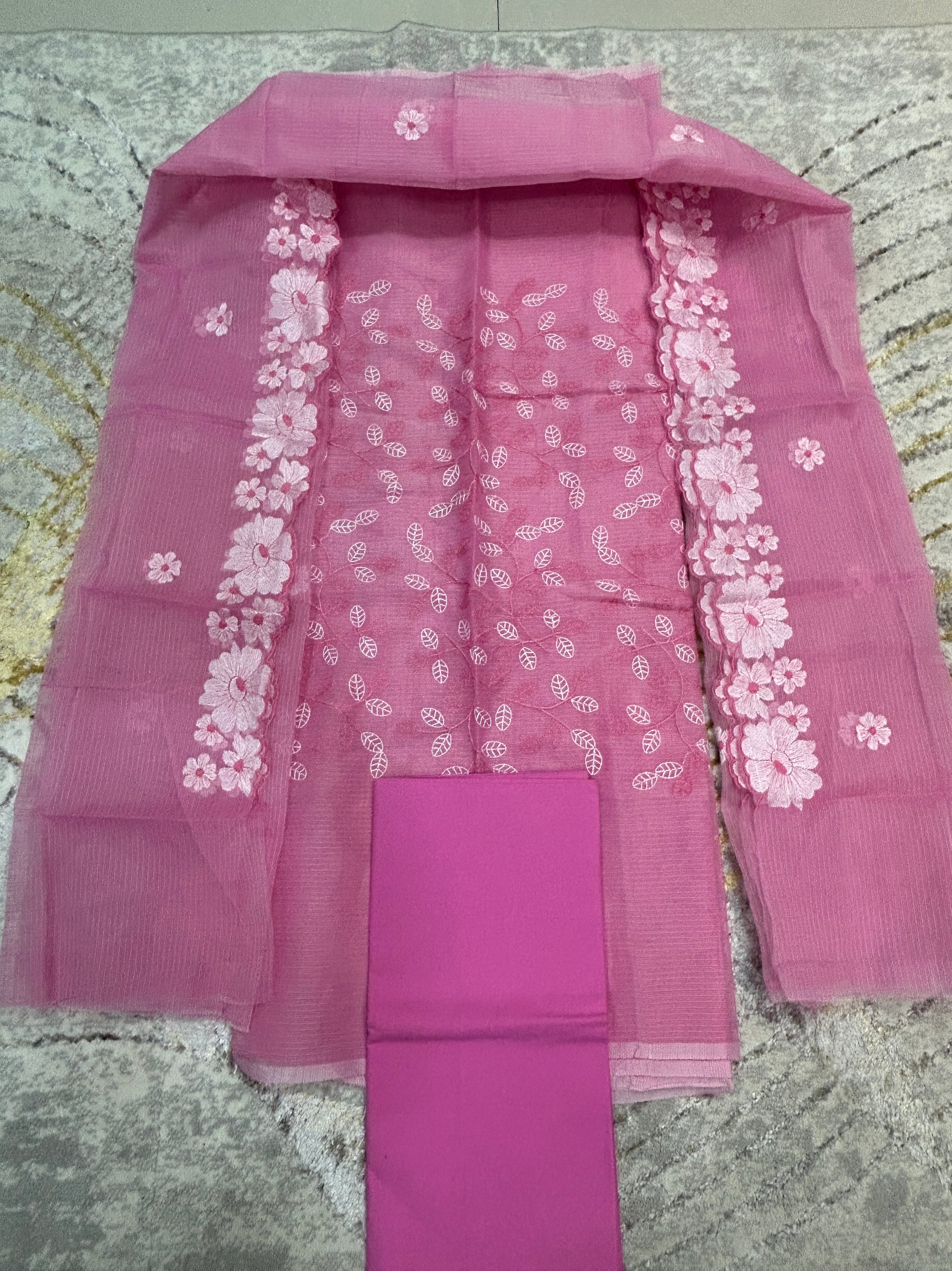 Pink Sky Blue Embroidered Kota Doria 3 piece unstitched Dress Material