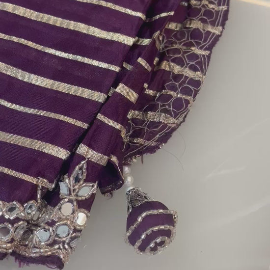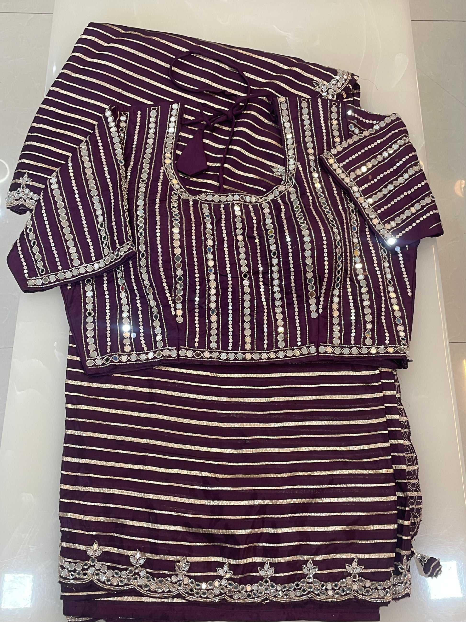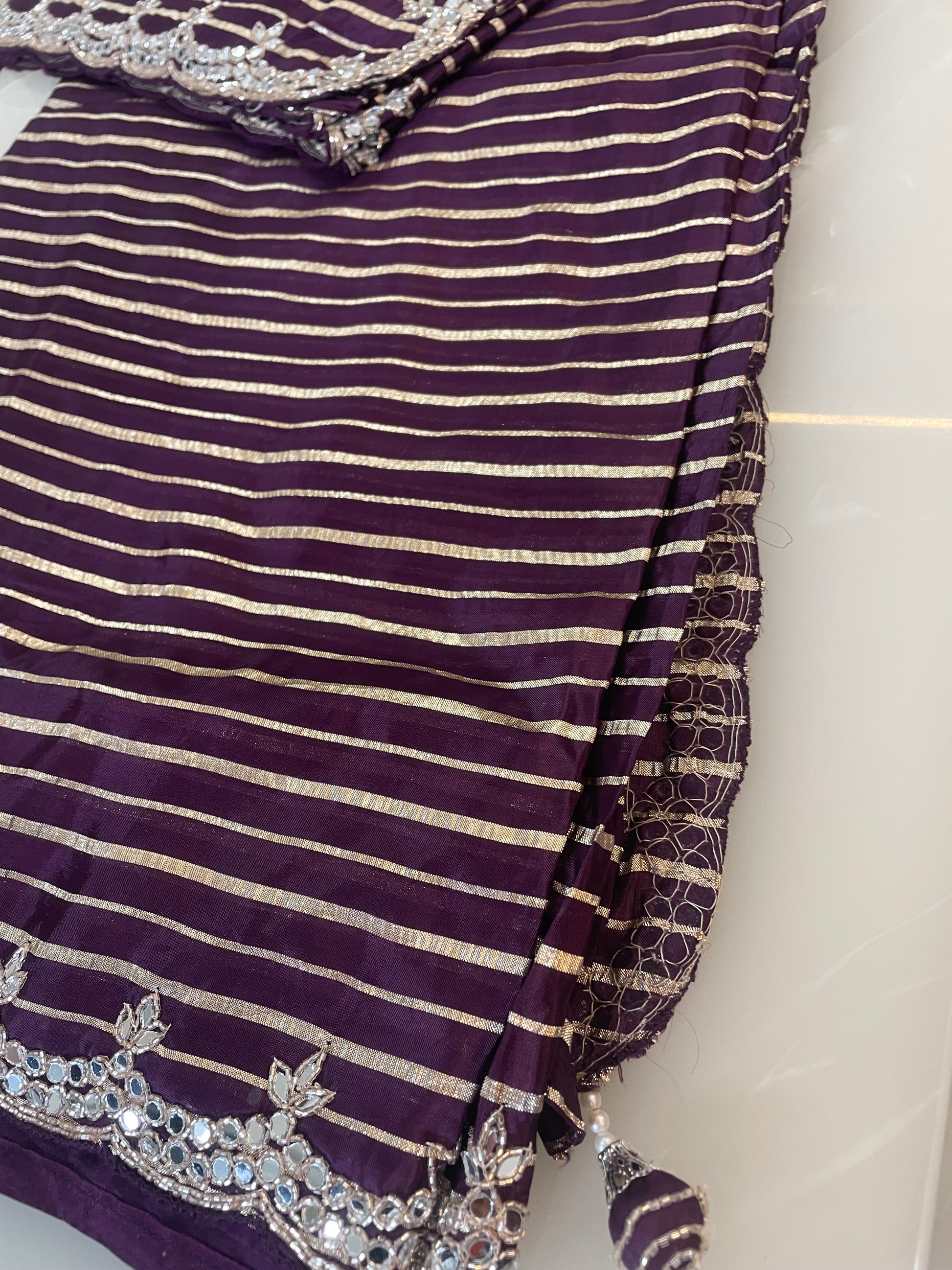 Burgundy color designer party wear Saree with striped zari with heavy handwork designer ready made blouse - SPW183